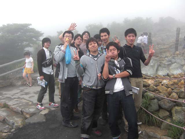 霧であまり景色は楽しめませんでしたが、みんなで登りました