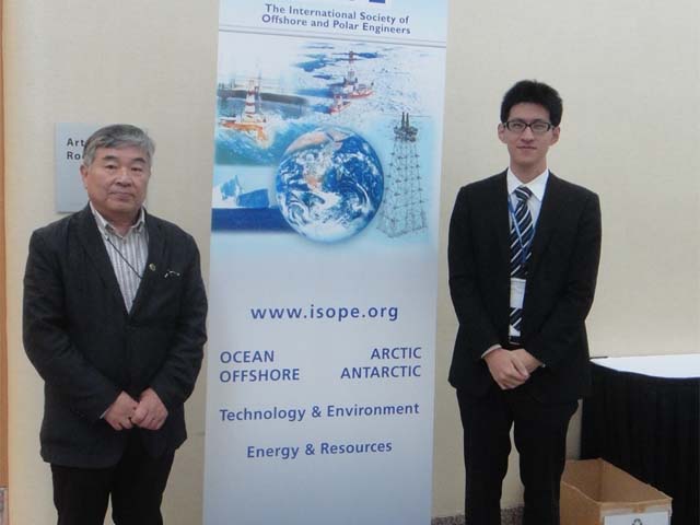 馬くんがアラスカにて開催されたISOPEに参加しました。海技研の山根さんと記念撮影。