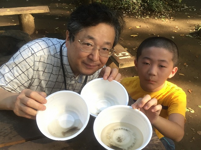 阿部先生はザリガニ釣りの名人です.