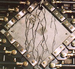 引張に弱い コンクリートは、引っ張られるとすぐひび割れが入ってしまう。 そこで、鉄と組み合わせる。これをReinforced Concrete (RC)と呼ぶ。 |