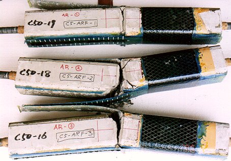 Bond between FRP sheet and concrete The anchorage between concrete and FRP sheet plays an important role in reinforcing design. As a brittle material, FRP show a lack of ductility, and the failure mode happens suddenly, without preceding yielding. Recently, many studies have been done to understand the bond behavior between concrete and FRP sheet, but at the present stage it is not advanced sufficiently to apply in projects of real structures. For these reasons, in terms of adhesion, it is necessary to confirm its safety, or seek for a bond length considering an adequate safe bond stress, in order not to allow the appearance and progress of bond rupture. In cases when the bond rupture or anchorage rupture form is unavoidable, it is necessary to obtain the rupture strength experimentally based on reliable data that consider an adequate safety. |