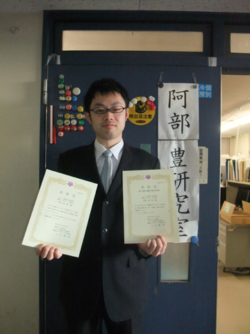 上澤さんが専攻長賞と修士論文優秀発表者賞を受賞しました