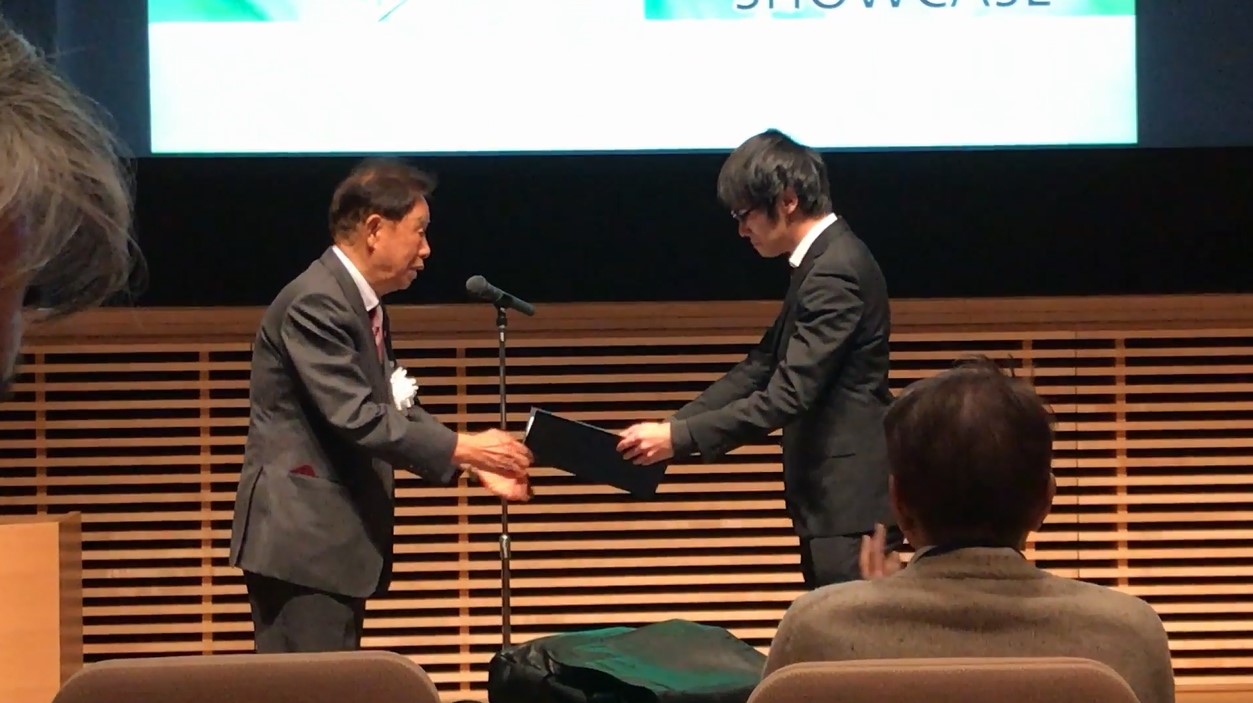 元筑波大学学長・ノーベル物理学賞受賞者の江崎玲於奈先生から手渡しで賞を頂きました.
